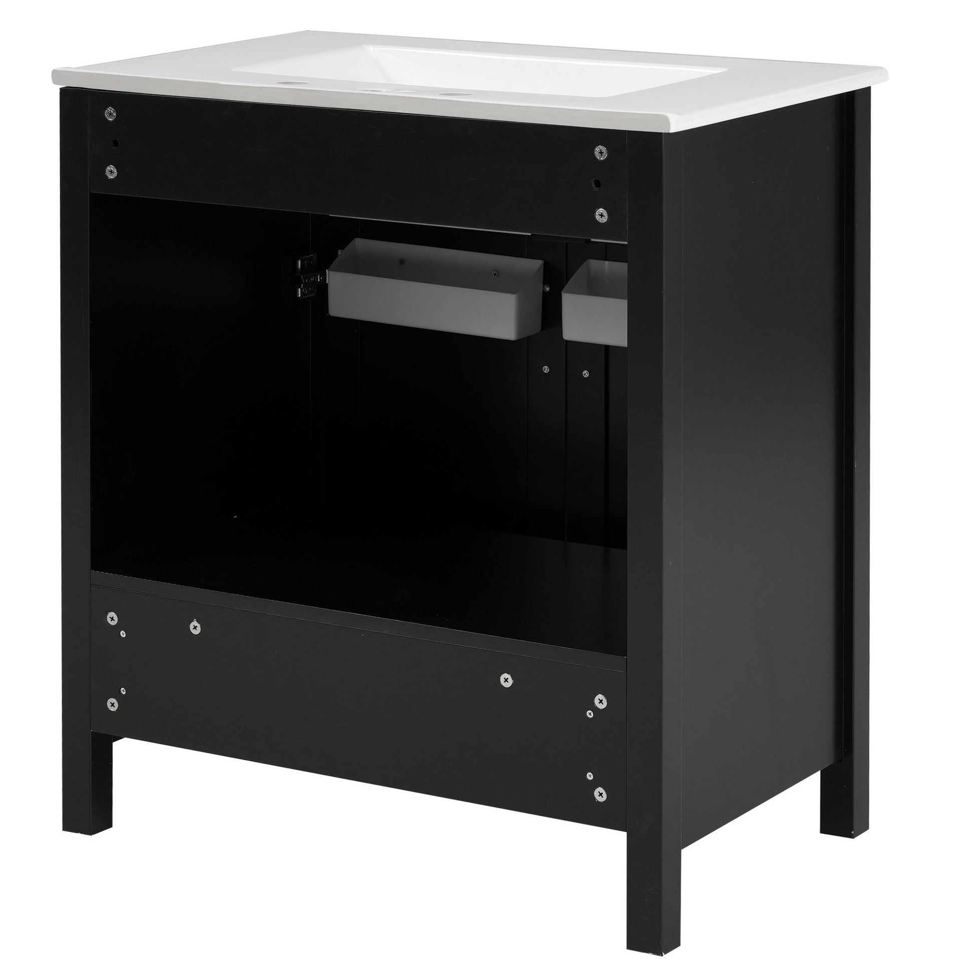 30-Inch Bathroom Vanity with Ceramic Sink and Ample Storage, Black