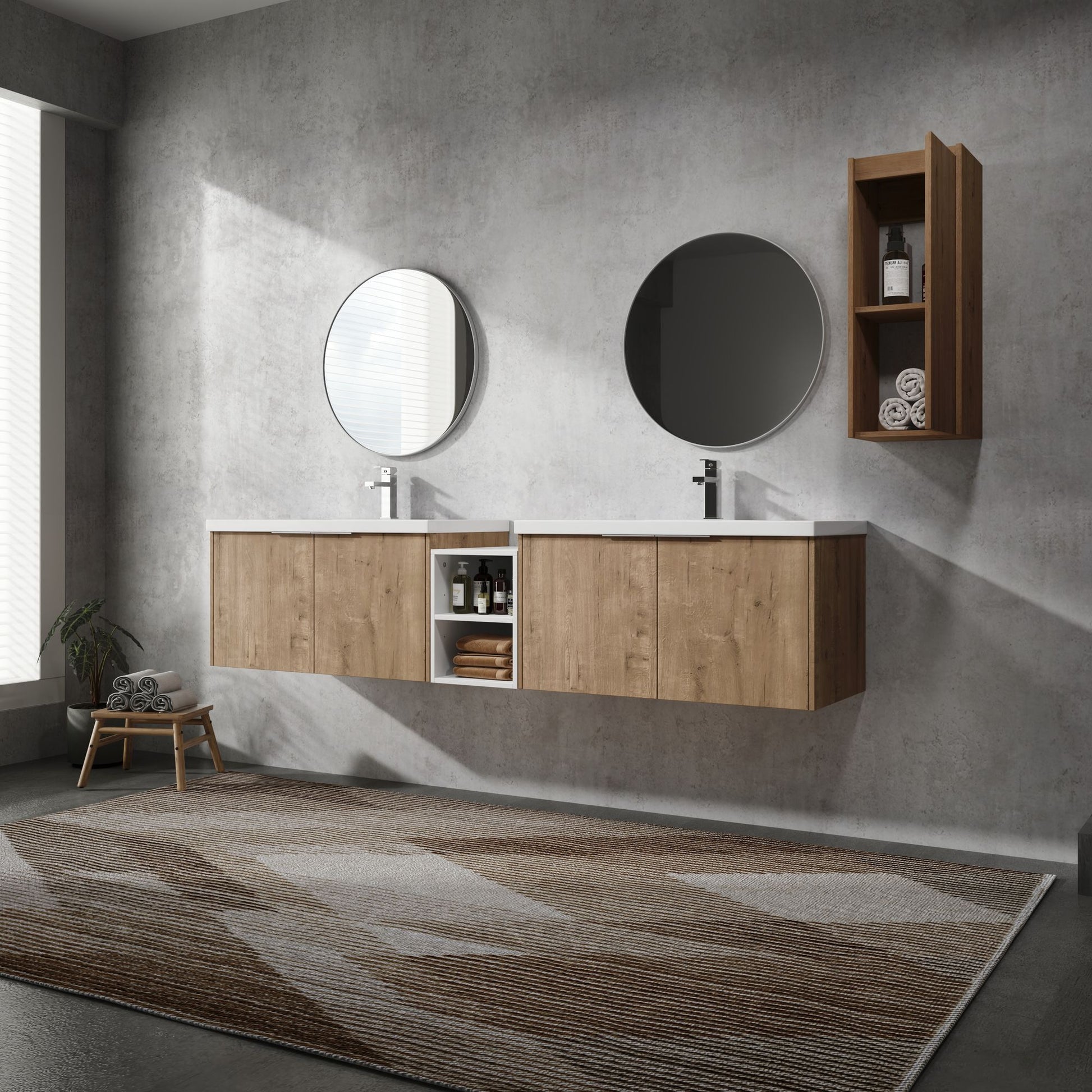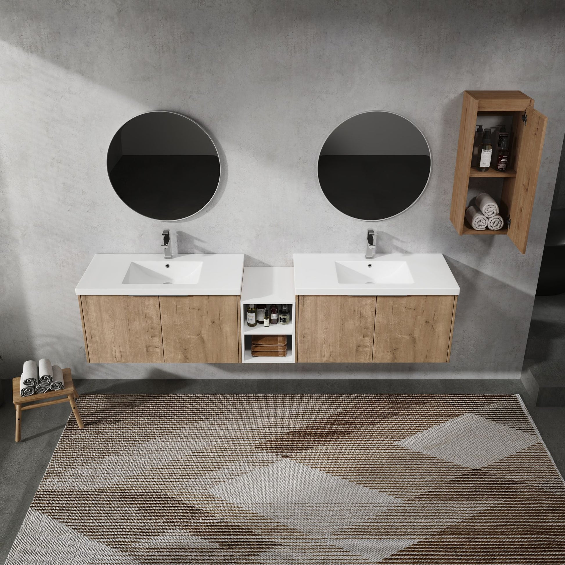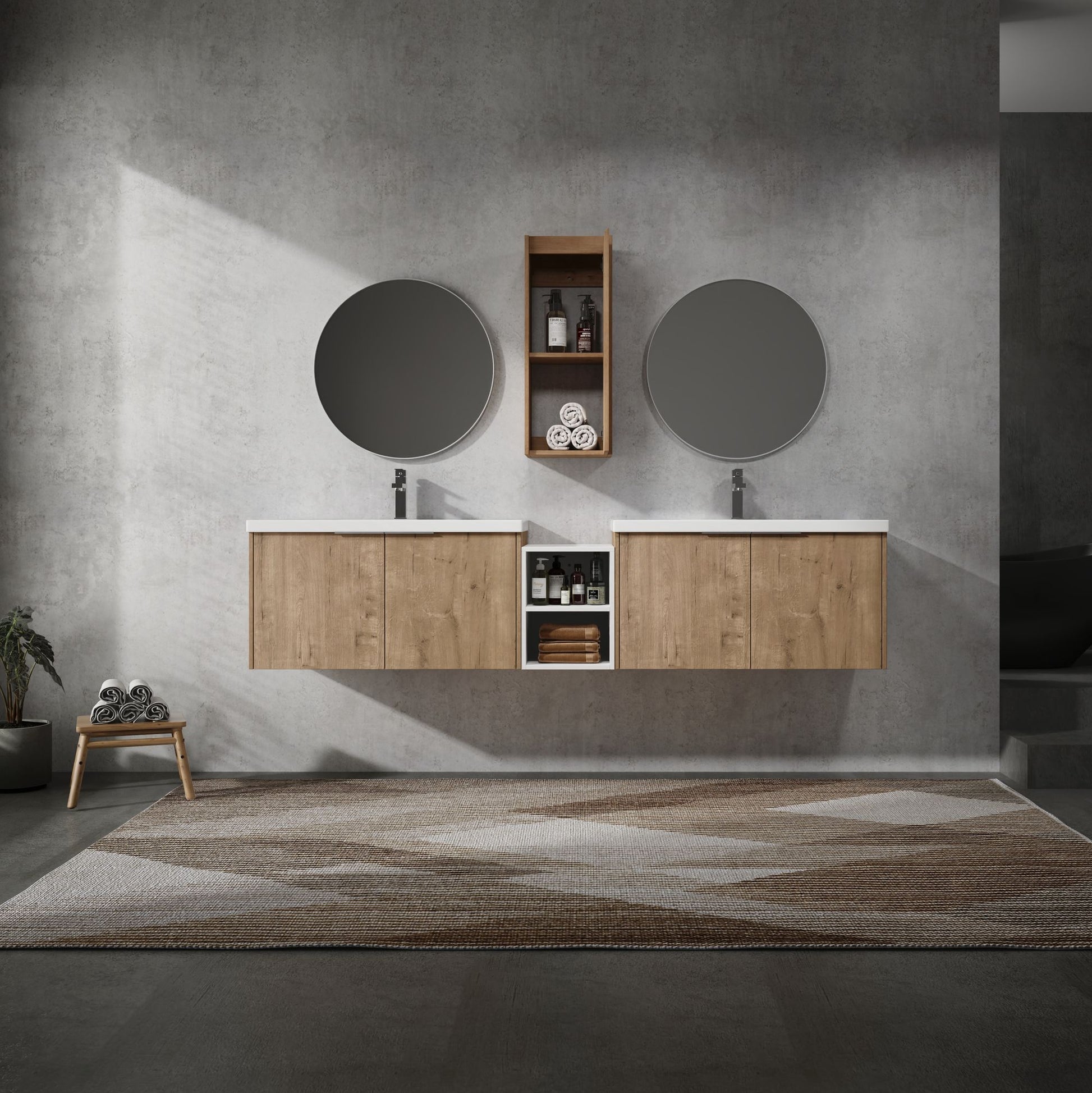 - 2x Vanity Cabinet;- 1x Side Cabinet;- 2x Resin Sink; - 1x Small Storage Shelves;- 4x Metal Handle; Parts Package |