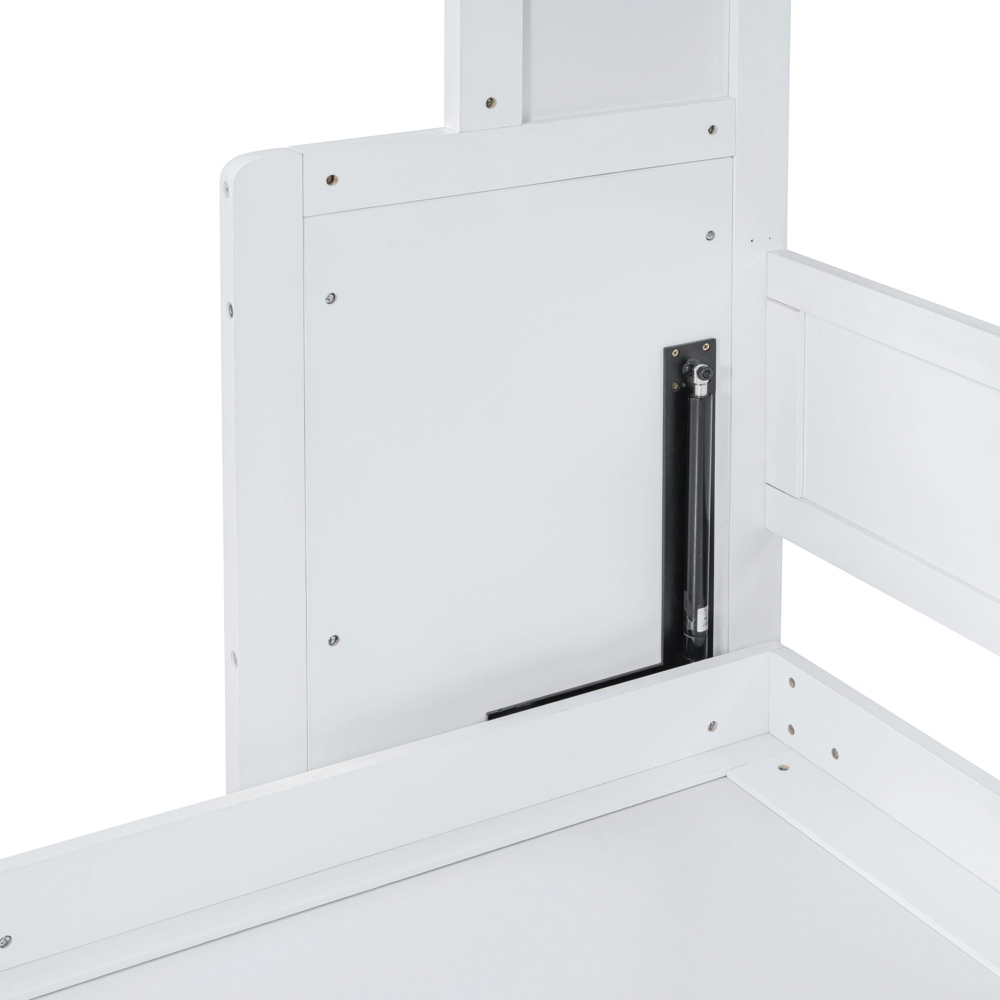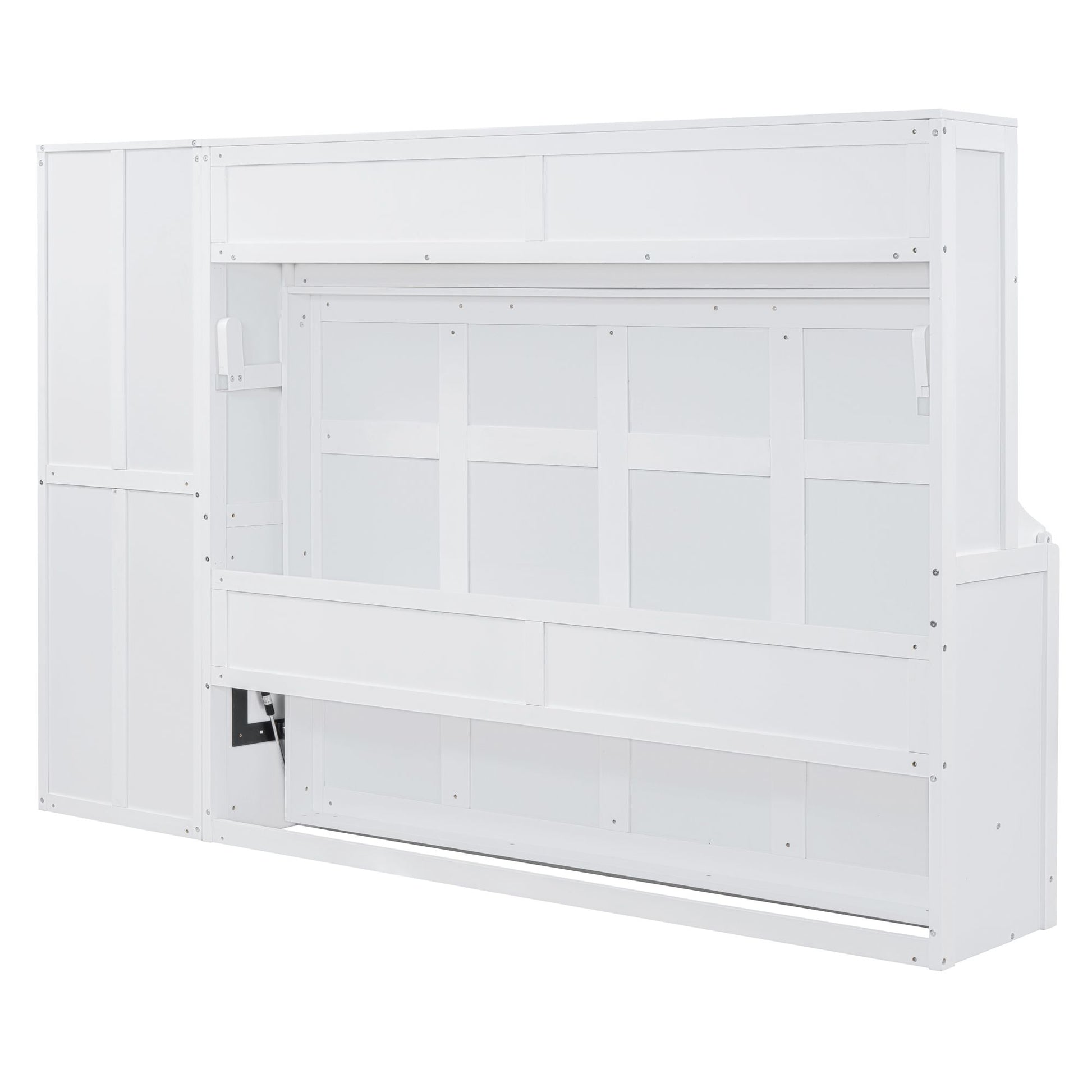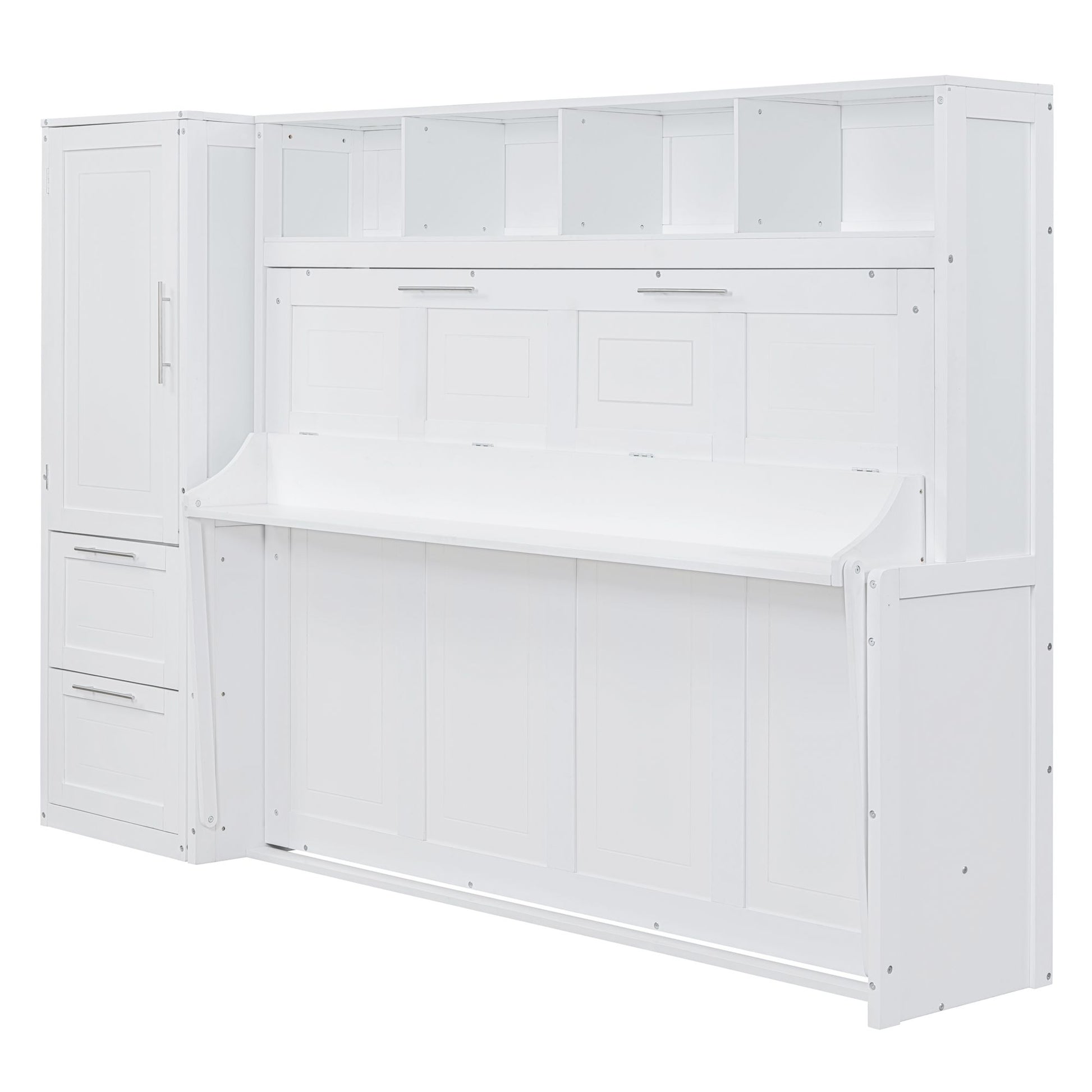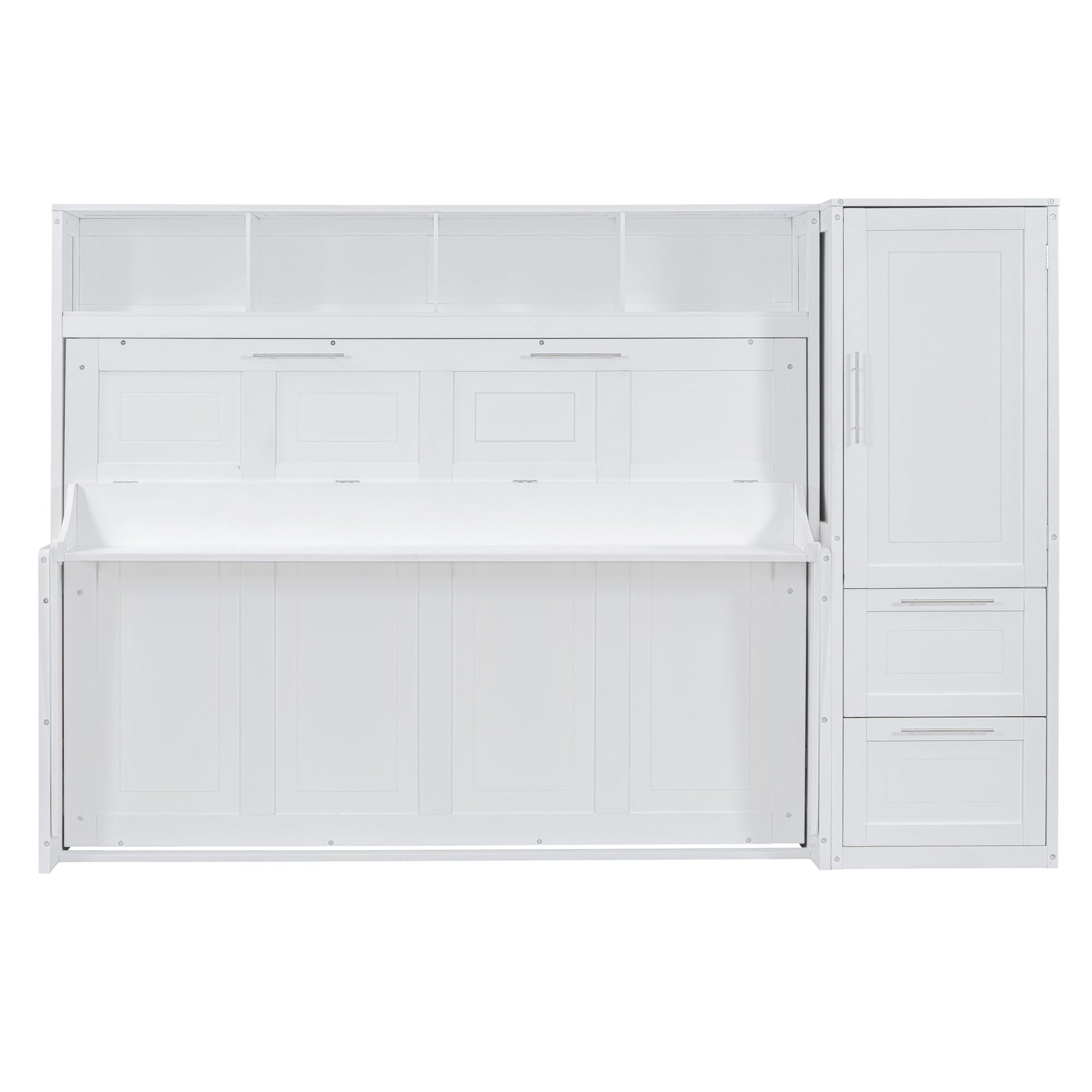 Full Size Murphy Bed Wall Bed with Closet and Drawers,White