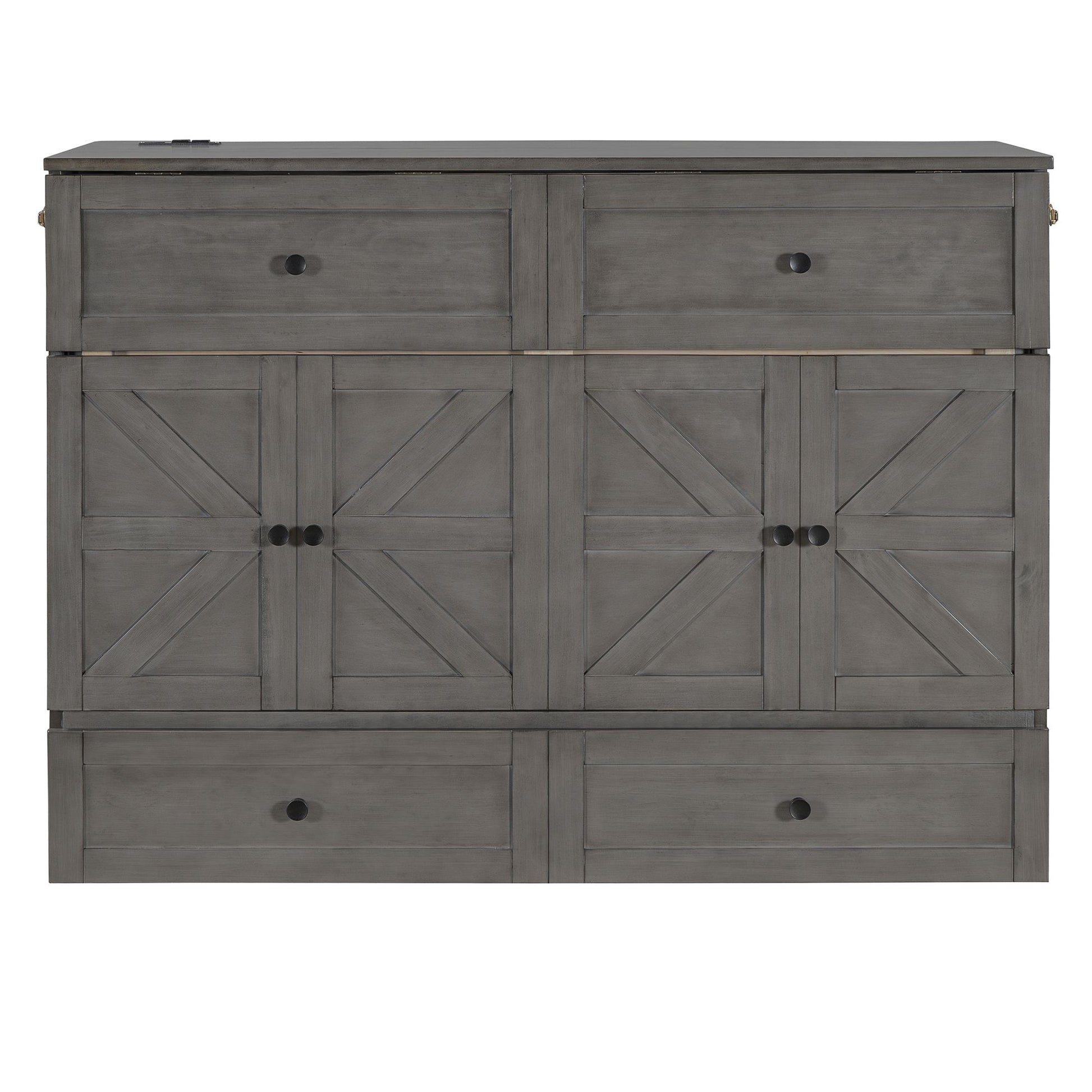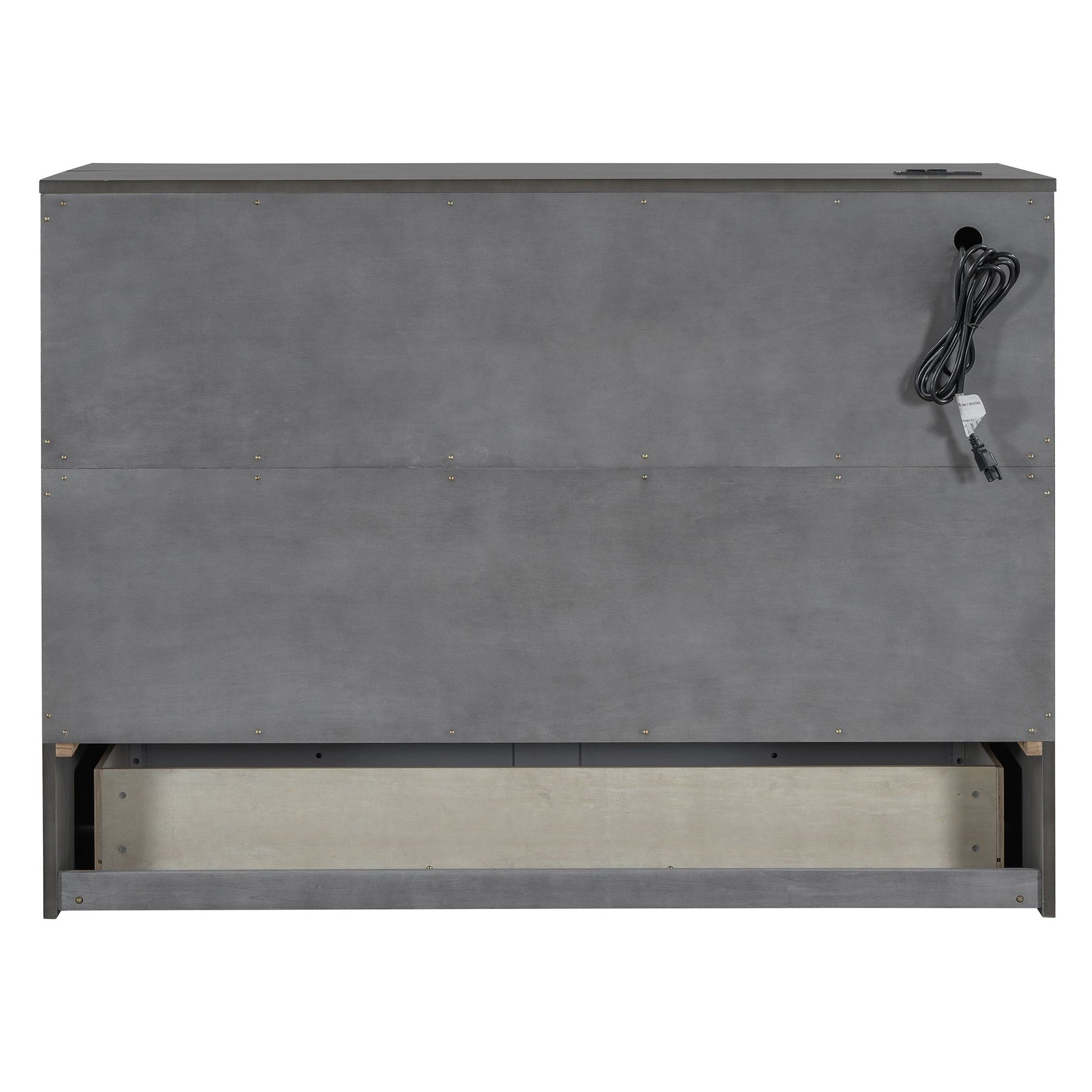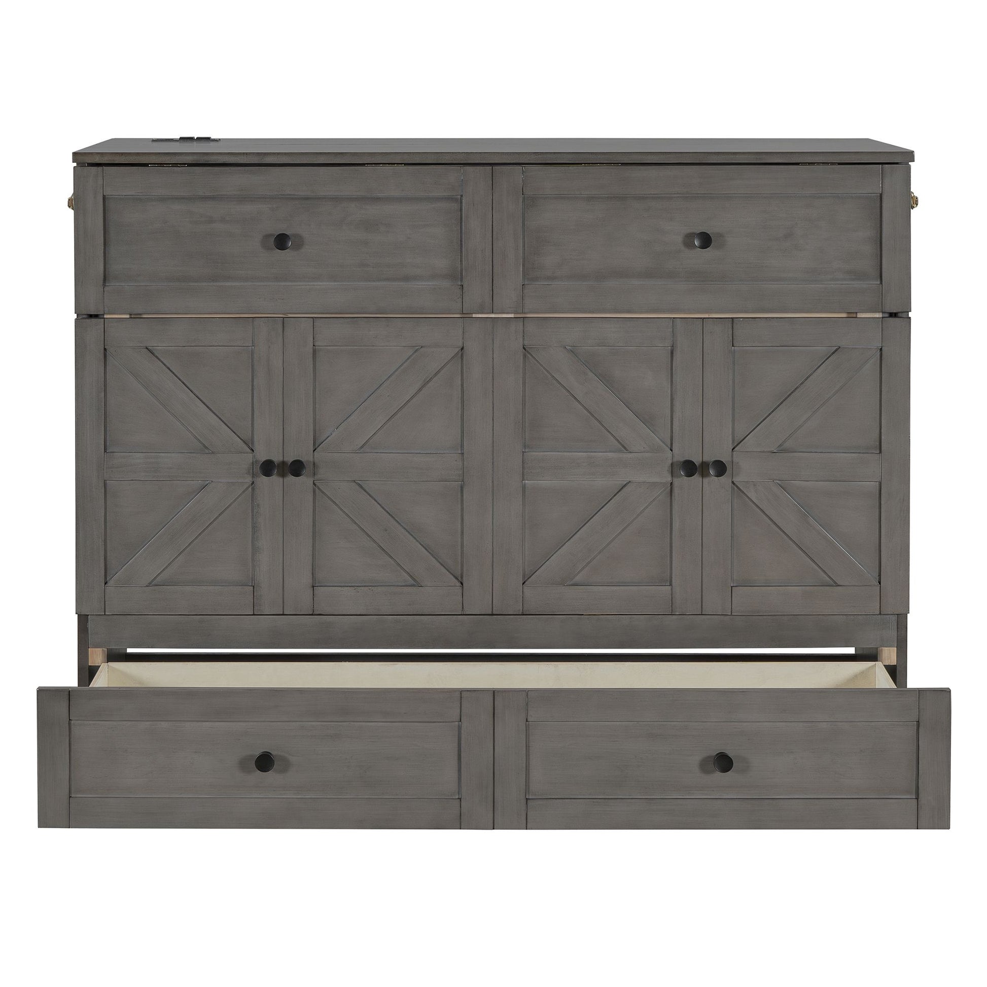 Full Size Murphy Bed with Large Drawers & USB Ports,Brushed Gray