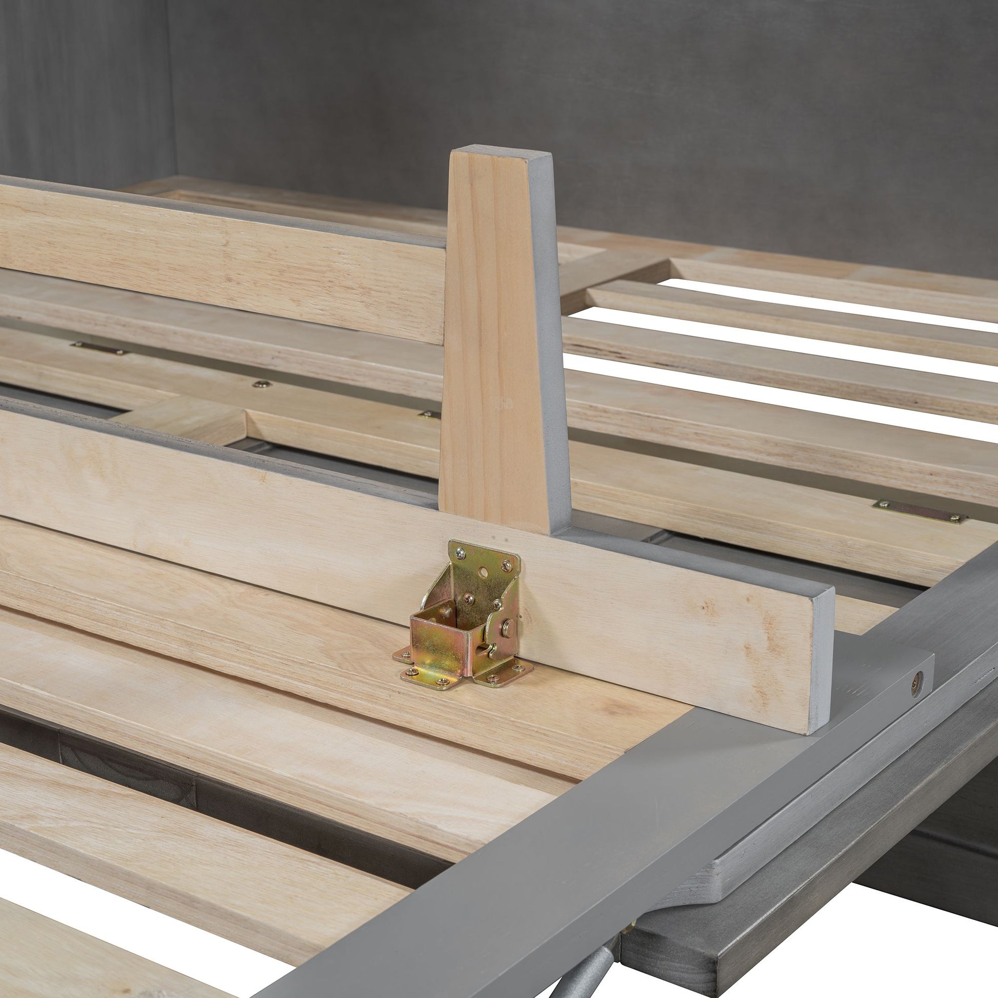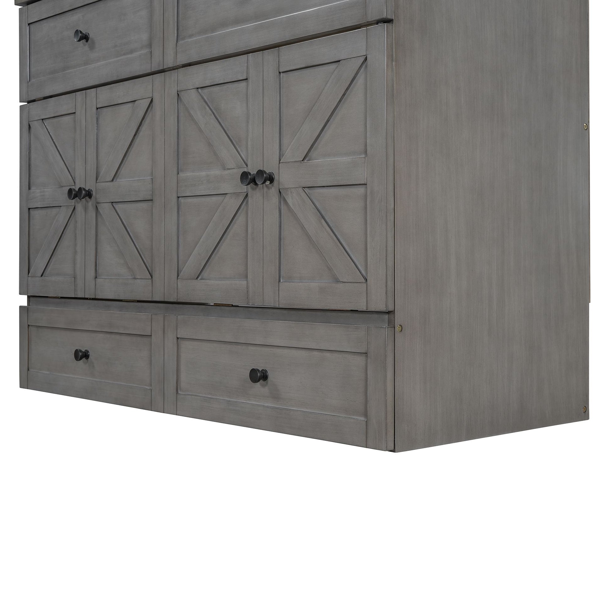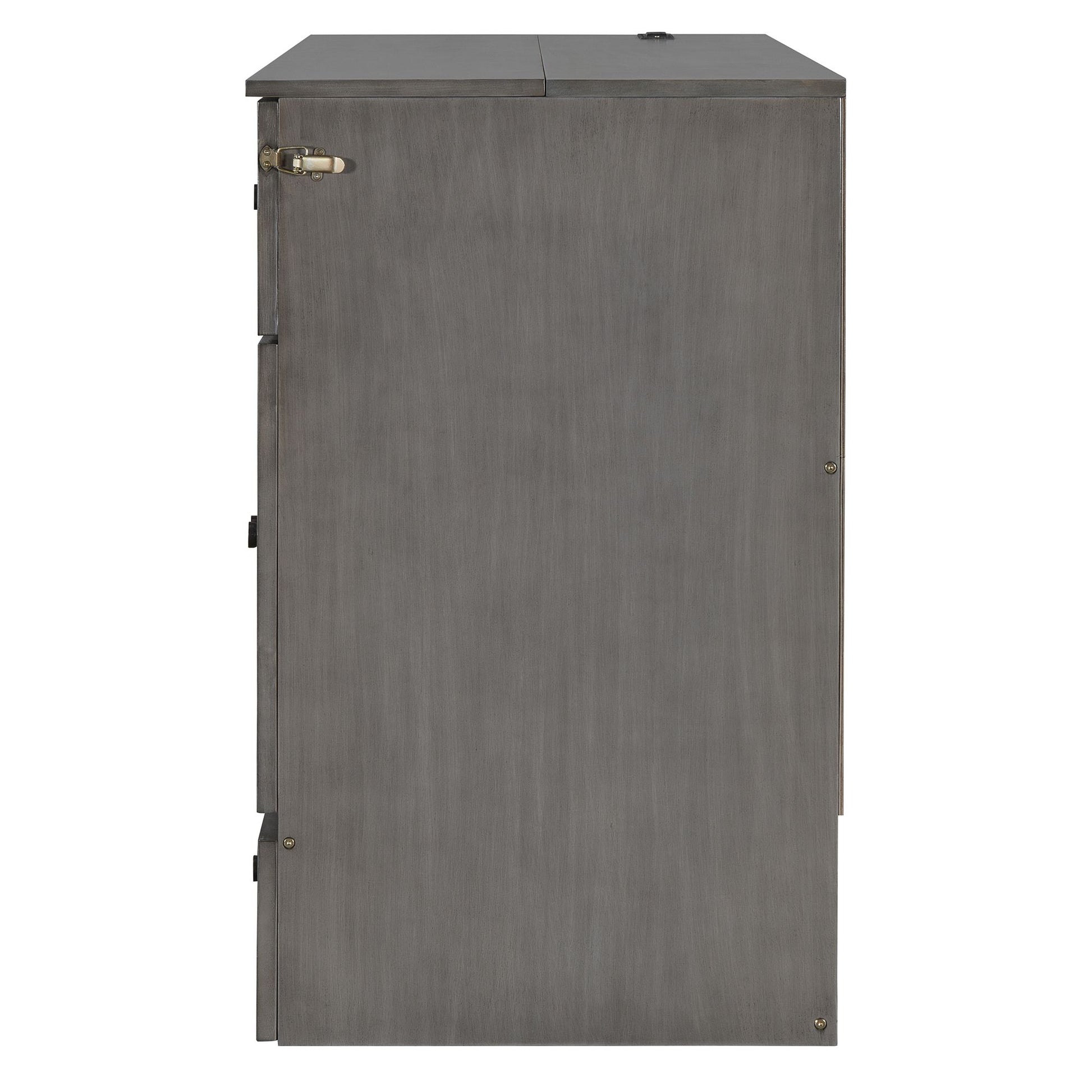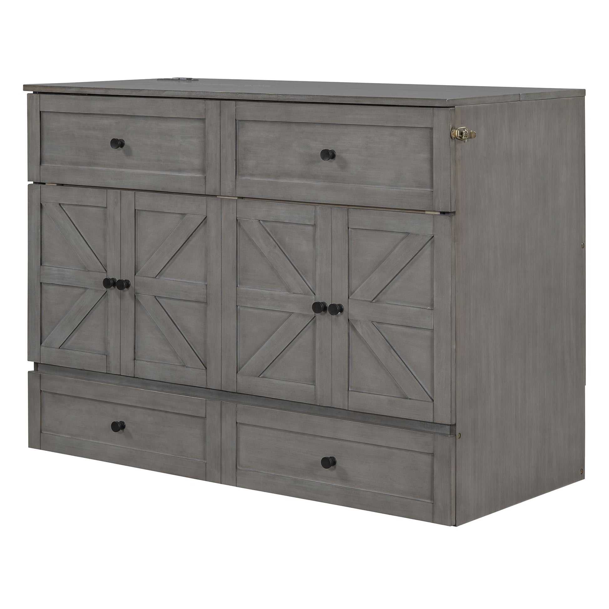 Full Size Murphy Bed with Large Drawers & USB Ports,Brushed Gray